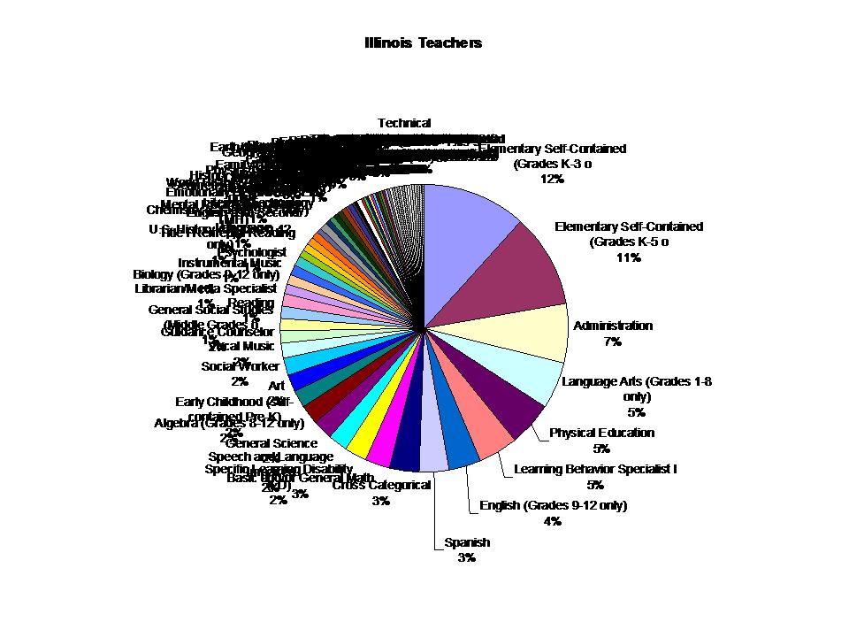 Okay – So New Jersey is just probably a wacky inefficient example that has way too many of those extra teachers in trivial and wasteful assignments. Well, here’s the breakout of Illinois teachers for 2008.