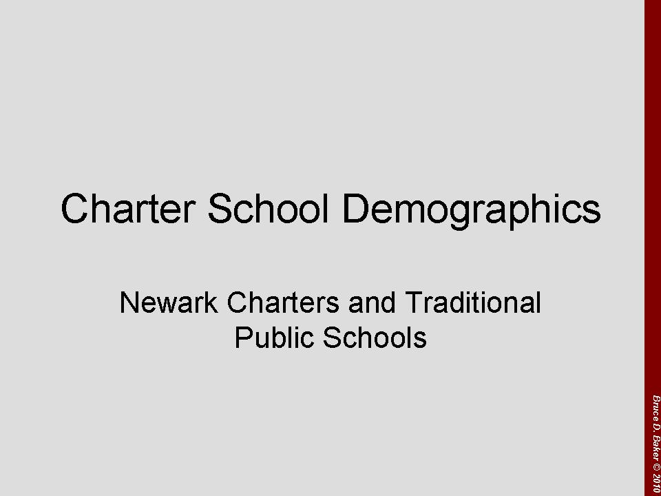 For some time now, I’ve been pulling together data from the National Center for Education Statistics and from the New Jersey Department of Education on New Jersey Charter Schools. Why do I do it? Mainly out of frustration that no-one else seems to be playing a monitoring role. I’ve not seen any good compilations or presentations of the various types of data that exist on New Jersey Charter Schools. That said, the data aren’t great. They aren’t worthy of high level academic research. But they are what we’ve got, and they are from the primary government sources charged with collecting these data. So, here are a series of my slides compiled from the data: