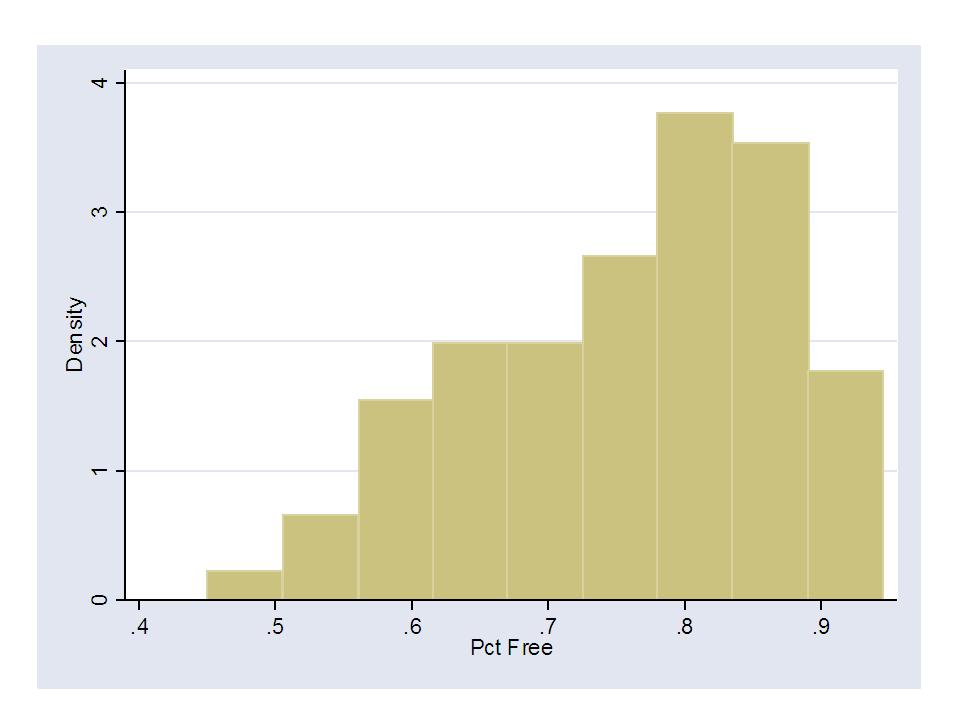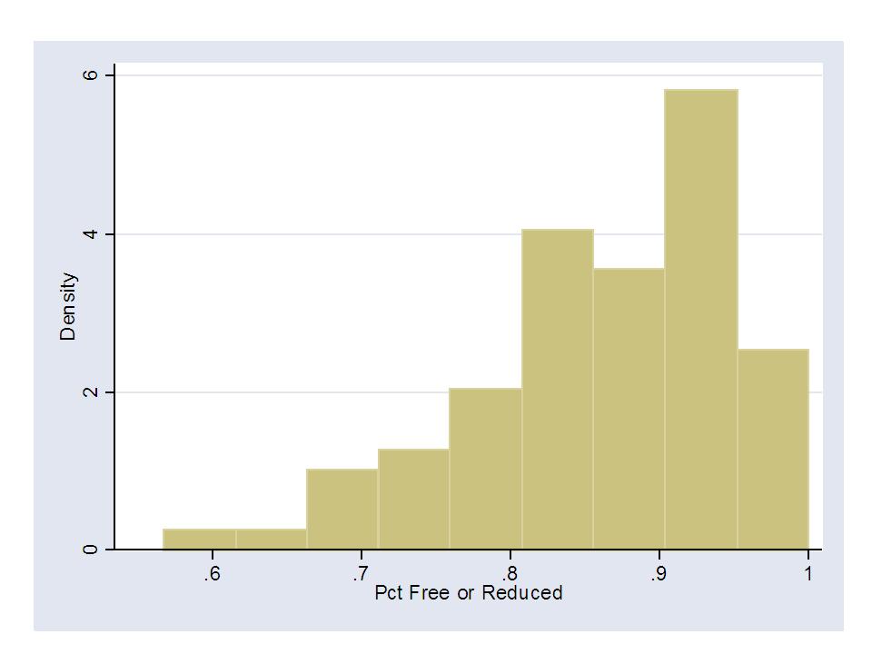 - When comparing across schools within poor urban setting, compare on basis of free lunch, not free or reduced, so as to pick up variation across schools. Reduced lunch income threshold too high to pick up variation.