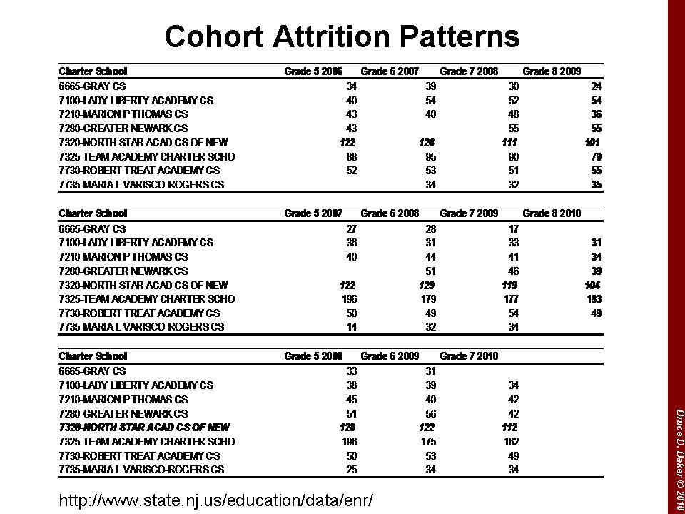 First, here are the cohort “attrition rates” based on 3 sequential cohorts for Newark Charter schools: