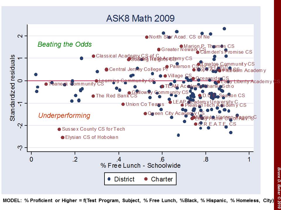Some will say, why should I care if charters are producing higher outcomes with similar kids? What matters to me is that they are producing higher outcomes! Anyone who produces higher outcomes in Newark or Trenton should be applauded, no matter how they do it. It’s one more high performing school where there wasn’t one previously.