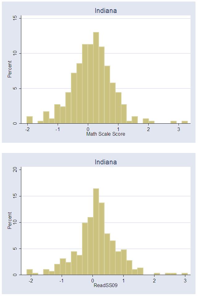 We must make two assumptions for our methodology to yield valid results. First, mapping to the standard normal requires us to make the assumption that the distribution of student achievement on each of the testing instruments is approximately normal at each level of aggregation (i.e. district, state, national). Second, to compare the distribution of student achievement across testing instruments we assume that standard deviation units are relatively similar across the 2 testing instruments and across time. In other words we assume that being a certain distance from mean student performance in Arkansas is similar to being the same distance from mean student performance in Massachusetts.