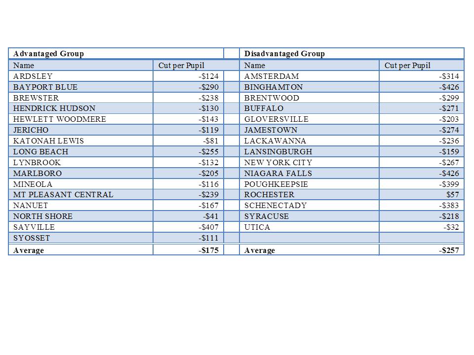 And here is the distribution of the most recent per pupil cuts in aid:
