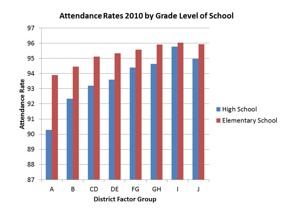 In addition, districts with higher poverty concentrations and high minority concentrations tend to have lower attendance rates for a variety of reasons beyond their control. Students from disrupted, low income households are more likely, for example to have illnesses that go untreated, be malnourished or be exposed to other factors (second hand smoke & other environmental hazards) that compromise their health. They have less access to transportation, and often come from single parent households, limiting parental supports to get them out the door to school. One cannot fix these factors by reducing aid to school districts facing these dilemmas.