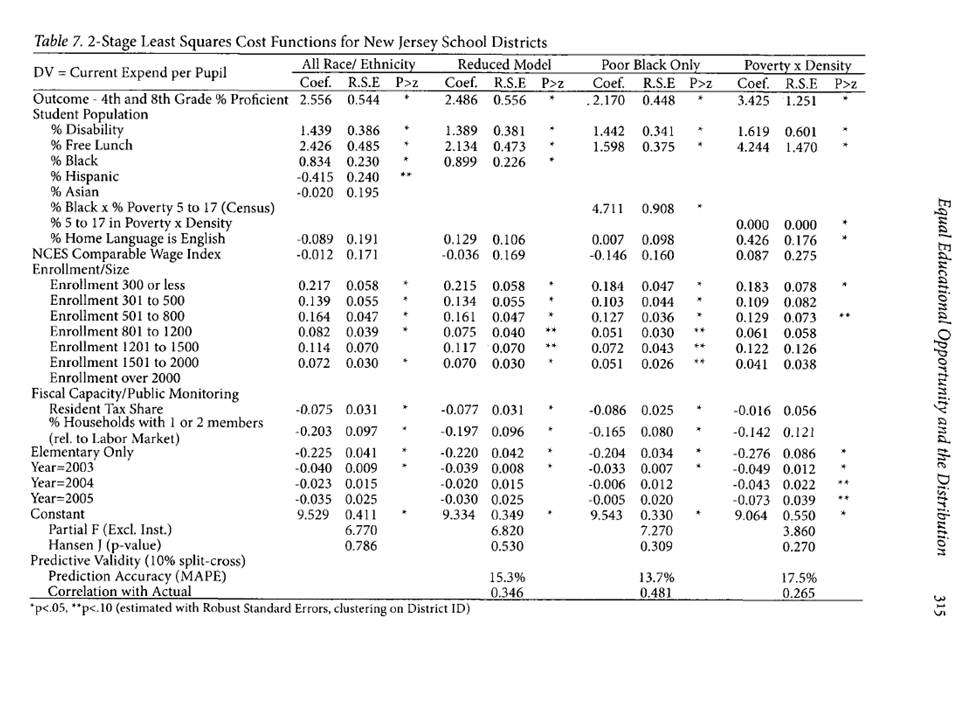 We also found that one might capture additional “costs” by including measures of school district racial composition, and we discuss the legal implications of this finding in several related articles (here, here & here). But, we also point out that there are alternatives for capturing some of the same effect, including the Urban x Poverty interaction.