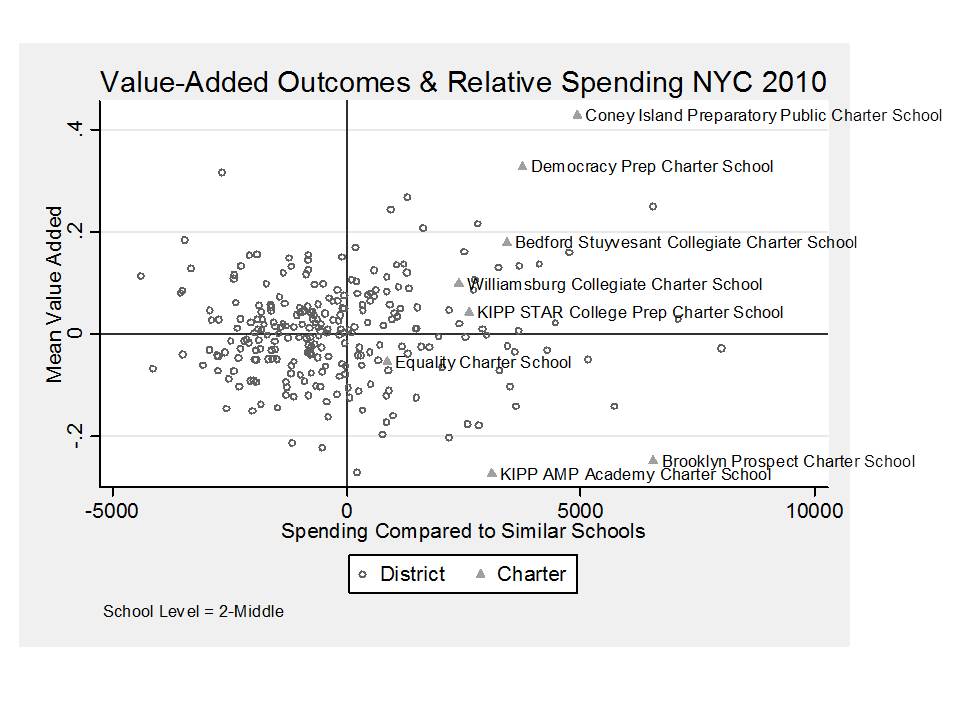 - When we do find schools – charter or other – that appear to be making unexpected gains, we should explore what it is that they are doing. We should explore their resource use. We should explore the strategies they employ and we should figure out not just what it is costing them to adopt these approaches but what it would cost to adopt these approaches in other settings and more broadly.