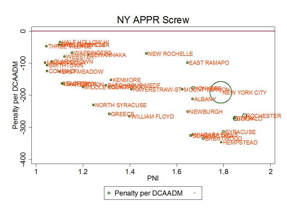 I don’t have time to explain the chart below in great detail, but I do provide complete analysis/explanation in this report on New York State school finance.