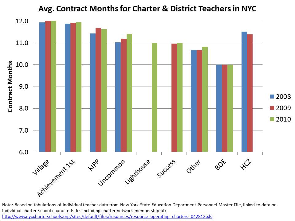 But, that pay does come with additional responsibilities, which for students translates to a) longer school years and b) greater individual attention. Here are the contract month differences for NYC charter and district school teachers.