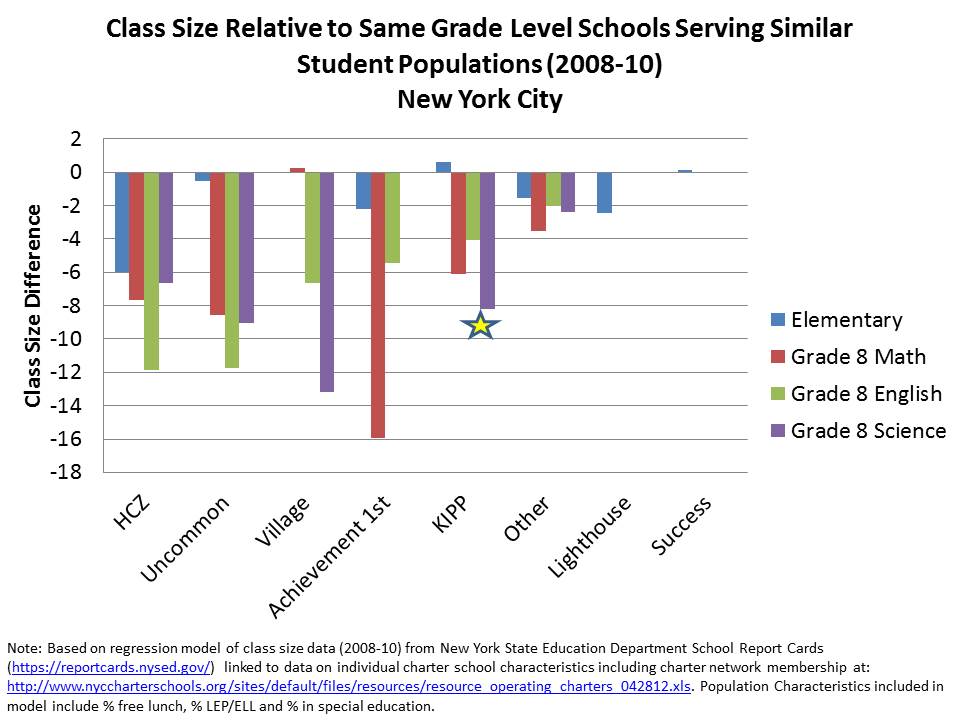 I don’t have the data access that Mathematica had for conducting their study. But I have, over time, compiled a pretty rich data set on finances of charter schools in New York and Texas from 2008 to 2010 and additional information on teacher compensation and other school characteristics. Notably, I’ve not compiled data on all of the KIPP charters in California, or all of the KIPP charters in Arkansas, Oklahoma, Tennessee or elsewhere. I’ve focused my efforts on specific policy contexts. I’ve done that, well, because… context matters. Further, I’ve taken the approaches I have in order to gain insights into basic resource differences across schools, within specific contexts.