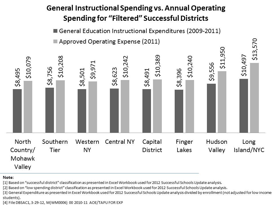 Thus, basic costs for districts statewide are measured largely against the average spending of districts lying somewhere in the triangle between Ithaca, Buffalo and Syracuse. Spending behavior of these districts has little relevance to costs of providing adequate education in and around New York City.
