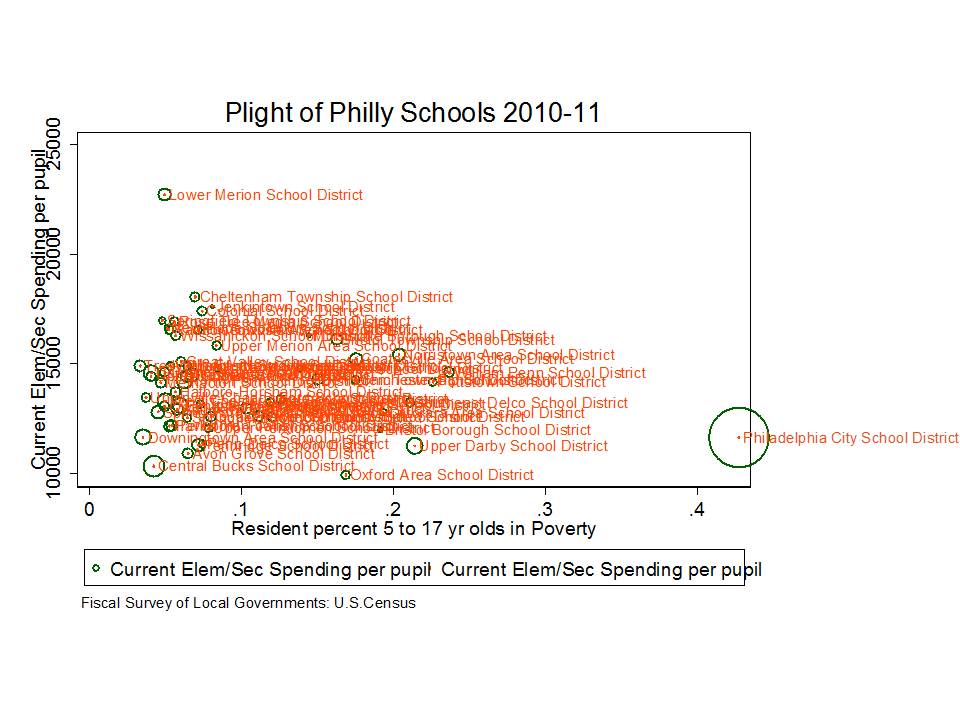 So wait, Lower Merion is just a wealthy white suburb… right next door? And by the way… to clarify as I have on many previous posts… the big disparities here are between, not within districts. Kids are segregated largely between, not within districts. We have rich districts, white districts, poor districts, black districts. We have poor, minority schools in poor minority districts and richer whiter schools in richer whiter districts. It is actually that simple… almost. And in Pennsylvania, poorer minority schools are sadly lacking in state support.