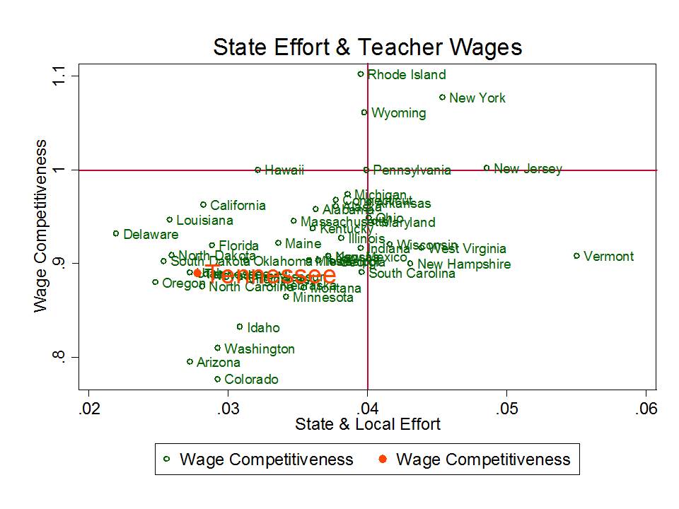 - Tennessee has relatively non-competitive teacher wages with respect to non-teacher wages.