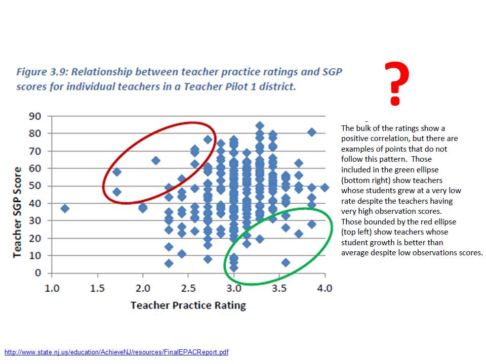 THEN came the recent report on progress being made on teacher evaluation pilot programs, and with it, this gem of a scatterplot: