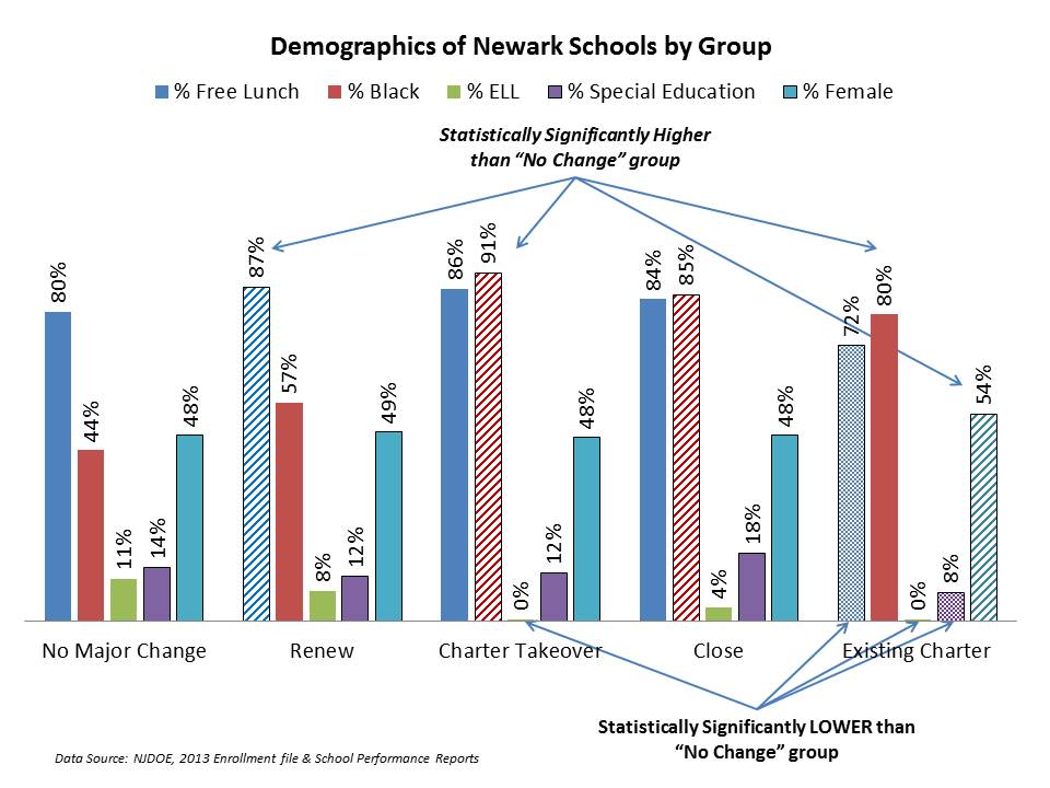 Our analysis calls into question NPS’s methodology for classifying schools under One Newark. Without statistical justification that takes into account student characteristics, the school classifications appear to be arbitrary and capricious.