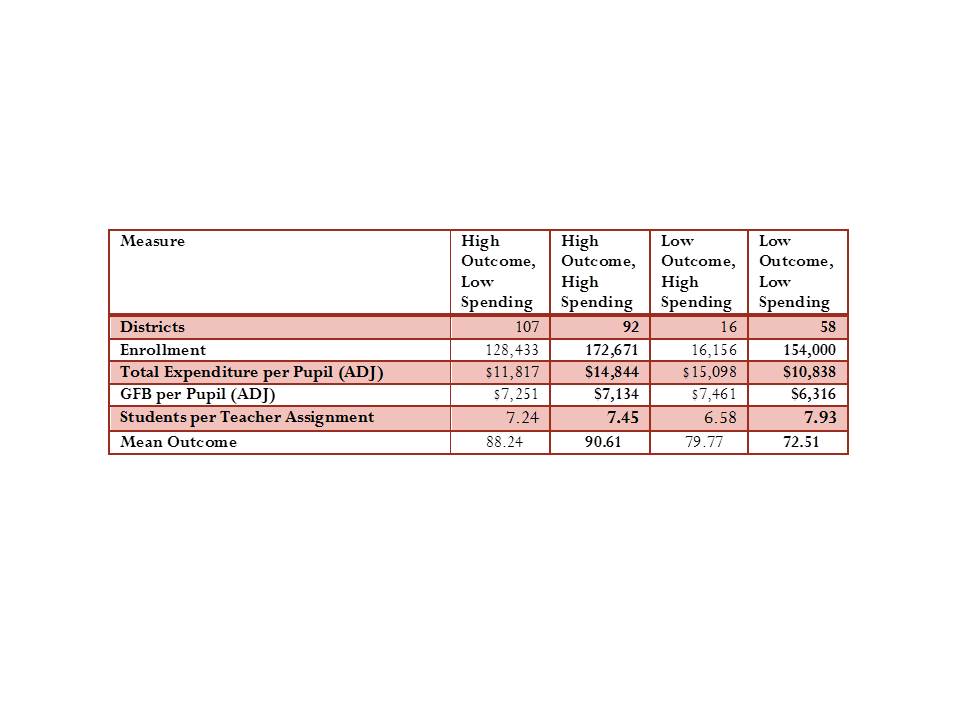 [8] having either <75% proficient & <$12,000 per pupil in total expenditures, adjusted for need and costs, or having >90% proficient & >$14,000 in need and cost adjusted spending