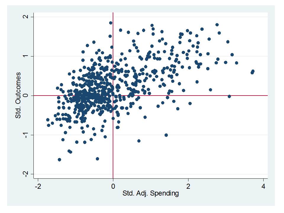 - Lower Right: Higher than average adjusted spending with lower than average outcomes