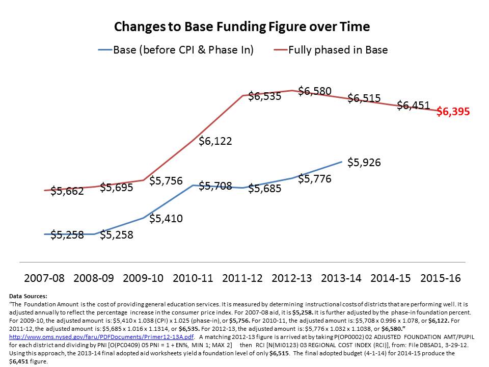 And, in 2015-16, they’ve done it again. The “base cost” figure which drives the formula has again been decreased, thus leveling down target funding across the board, all else equal.
