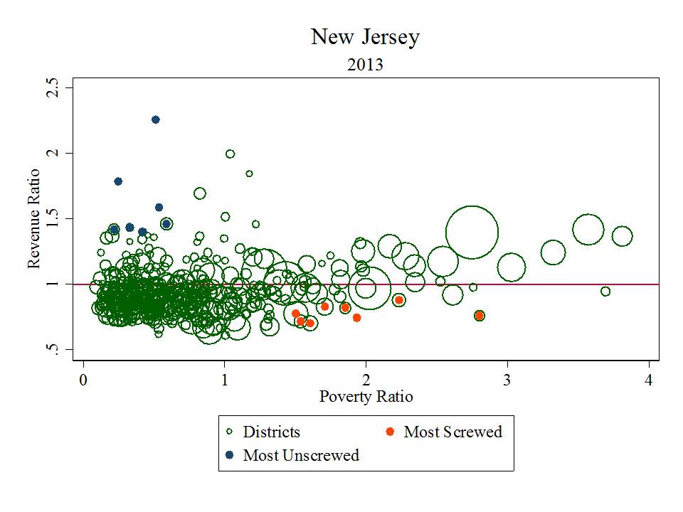 Figure 2. Relative Poverty and Relative Revenues for New Jersey Districts in 2013