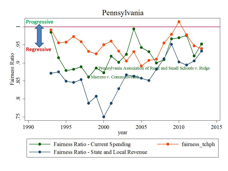 Pennsylvania and Illinois are the two worst states in the nation – year after year – time and time again, when it comes to inequity of state school finance systems. Here’s Pennsylvania over time.
