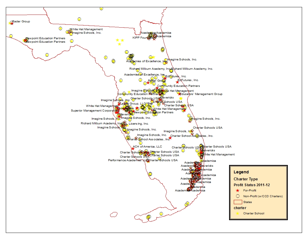 But for a few KIPP schools, more southeastern charters are either managed by smaller firms, are independent, or are managed by White Hat. Florida is even more fun. Florida has a plethora of providers we don’t often hear about in academic research, but more often hear about in scandalous news headlines (Academica, Mavericks, Imagine[more later])