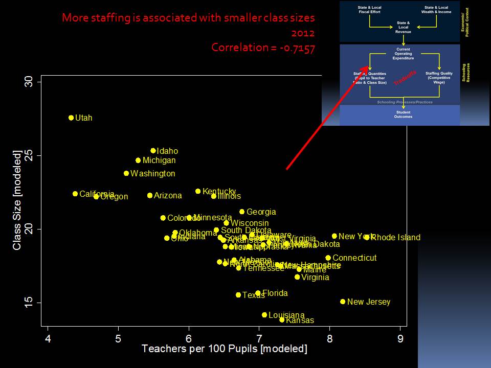 Note: And not surprisingly, states with more teachers per 100 pupils also tend to have smaller class sizes (holding school size, location and poverty rates constant).