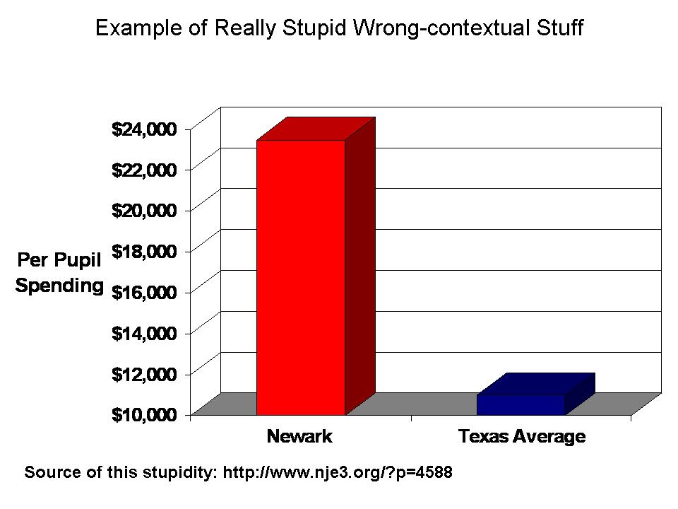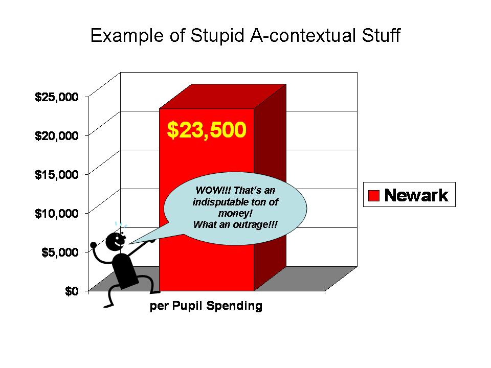But why do we consider these measures in education policy research to begin with? The main reason we consider poverty measures in education policy research is because it is generally well understood that children’s economic well-being is strongly associated with their educational outcomes, and with our ability to improve those outcomes and the costs of improving those outcomes. In most thorough, social science analysis of these relationships, extensive measures of family educational background, actual income (rather than simple categories), numbers of books in the household, and other measures are used. But such measures aren’t always readily available. It is more common to find, in a state data system, a simple indicator of whether a child qualifies for free or reduced price lunch. That doesn’t make it good though. It’s just there.