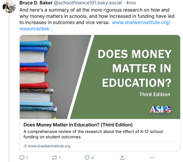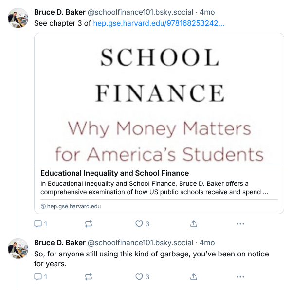 I’ve had enough. This has to stop. I’ve explained on at least a few occasions that there exists a cottage industry for whom their bread and butter is telling state legislatures and judges that money simply doesn’t matter for schools (Merchants of Doubt): That public schools all have more than enough to do what they need to do and they all just need to do better with what they have – especially those over-funded schools in high poverty settings.
