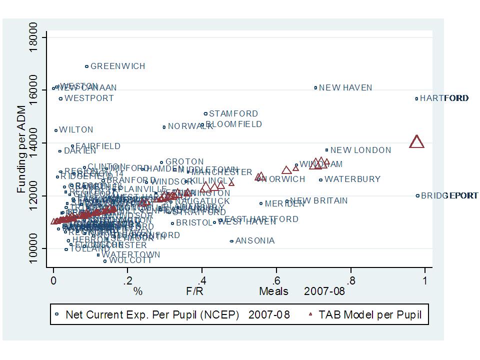 This topic comes to mind today because ConnCan has just released a report (http://www.conncan.org/matriarch/documents/TheTab.pdf) on how to fix Connecticut school funding which provides classic examples of just makin’ stuff up (page 25). The report begins with a few random charts and graphs showing the differences in funding between wealthy and poor Connecticut school districts and their state and local shares of funding. These analyses, while reasonably descriptive are relatively meaningless because they are not anchored to any well conceived or articulated explanation of “what should be.” Such a conception might be located here or even here (Chapters 13, 14 & 15 are particularly on target)!